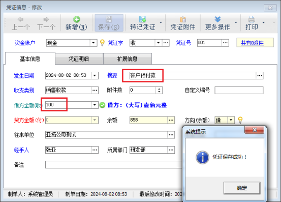 此文章相關(guān)演示視頻:新增客戶預(yù)付款界面如何直接轉(zhuǎn)記出納憑證演示視頻 信管飛軟件支持錄入客戶預(yù)付款,客戶預(yù)付款是客戶預(yù)付訂金給我們,這種情況下貨物還沒有發(fā)出。如果還沒有形成相應(yīng)的銷售訂單,這時我們可以直接在應(yīng)收款管理界面錄入客戶預(yù)付款。另外標(biāo)準(zhǔn)版和專業(yè)版中增加了出納管理模塊,可以登記現(xiàn)金銀行日記賬。如果