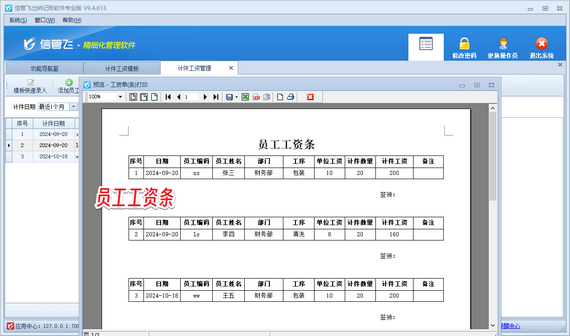 在企業(yè)管理中,計(jì)件工資的核算是一項(xiàng)既繁瑣又重要的工作。為了幫助企業(yè)更好地管理計(jì)件工資,信管飛出納記賬軟件提供了全面且精準(zhǔn)的解決方案。 該軟件支持用戶輕松設(shè)置不同工種的計(jì)件單價,確保每一筆工資的計(jì)算都準(zhǔn)確無誤。用戶只需將相關(guān)數(shù)據(jù)錄入系統(tǒng),軟件便會自動進(jìn)行工資計(jì)算,大大減輕了財(cái)務(wù)人員的負(fù)擔(dān)。