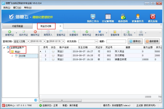 很多剛學出納的學員都需要找一些出納電腦記賬表格、出納記賬表、出納記賬表格模板、出納Excel流水賬表格等出納相關記賬表格,以方便按照表格模塊進行記賬。信管飛出納記賬軟件中包含豐富的記賬統計表格,比如日記賬表格、現金銀行賬簿、資金日(月)報表等等,可以通過軟件中的導出為Excel功能,生成記賬表格或者直接在出納軟件中把記賬記錄打印出表格下面就給大家介