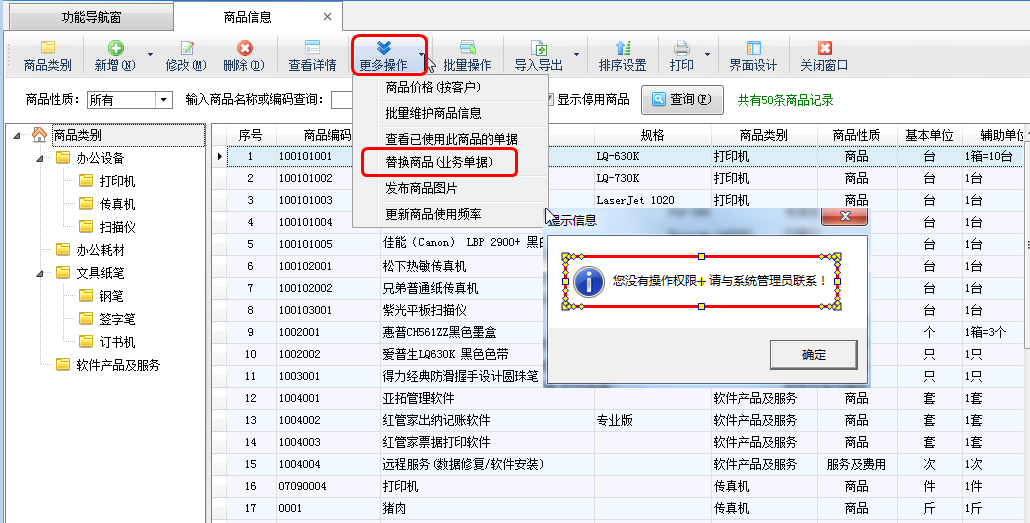 信管飛RMS、信管飛倉庫管理軟件、信管飛送貨單軟件等支持設(shè)置多個操作員登錄軟件,對登錄的操作員軟件可控制操作員權(quán)限。開單過程中可能存在單據(jù)商品信息輸入錯誤現(xiàn)象,可在基礎(chǔ)資料—》商品信息中對錯誤商品進(jìn)行替換。為避免多個操作員重復(fù)替換出錯,可設(shè)置操作員不可批量替換商品(業(yè)務(wù)單據(jù))的權(quán)限,指定一個操作員允許操作。 本文以信管飛送貨