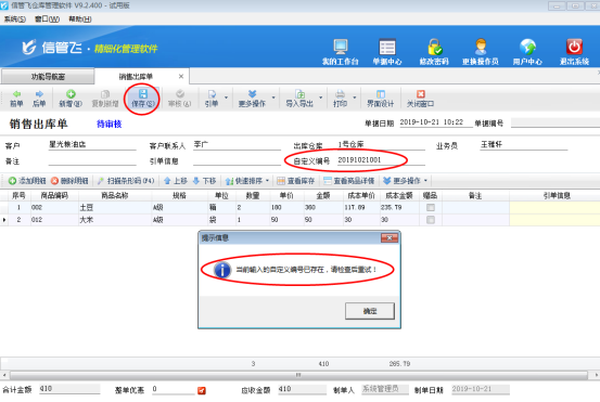 亞拓軟件自主研發(fā)的信管飛RMS、信管飛送貨單軟件、信管飛倉庫管理軟件等都支持開單后自動生成單據(jù)編號,另外,軟件也支持錄入自定義編號(不是單據(jù)編號),用戶可以在自定義編號內(nèi)錄入訂單合同號等信息,為了避免錄入的自定義編號出現(xiàn)重復(fù),軟件支持參數(shù)設(shè)置自定義編號不可重復(fù)。 以信管飛倉庫管理軟件為例,在“系統(tǒng)管理”—》“系統(tǒng)參數(shù)配置”—