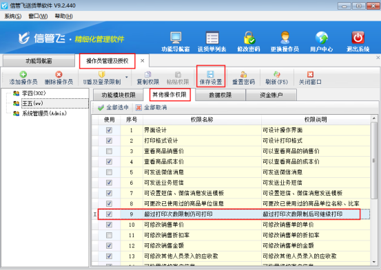 信管飛送貨單軟件、信管飛RMS、信管飛倉庫管理軟件都支持設(shè)置報表的打印次數(shù),以此來限制單據(jù)的打印次數(shù)。通過設(shè)置這個參數(shù),可以避免開單人員開單打印后又修改單據(jù),出現(xiàn)軟件中的單據(jù)內(nèi)容與打印出來的單據(jù)不一樣的情況。下面我們以信管飛送貨單軟件為例演示一下具體的操作步驟。 設(shè)置報表打印次數(shù)提示: 登