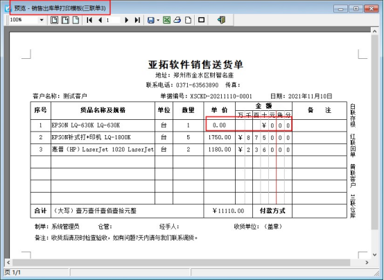 信管飛送貨單軟件等支持自定義設(shè)計(jì)打印模板,送貨單軟件中自帶了十幾種打印模板樣式,默認(rèn)打印模板格式在打印金額和單價(jià)為0的時(shí)候不顯示零值,空白顯示,如下圖所示: 有用戶需要當(dāng)單價(jià)為0時(shí),打印模板上顯示出0值,本文以送貨單軟件為例,示范下如何取消隱藏零值設(shè)置,在送貨單開單界面打印下選擇“打印格式設(shè)計(jì)”。選擇