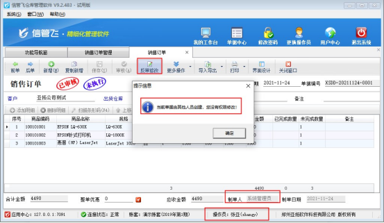 信管飛系列軟件支持新增操作員和設(shè)置操作員權(quán)限,軟件可登錄多個操作員,為避免操作員之間開的訂單被修改,軟件支持控制操作員不能修改其他人開的訂單,本文以“信管飛倉庫管理軟件銷售訂單”為例,示范如何控制操作員不能修改其他人開的訂單。 在功能導(dǎo)航窗點(diǎn)擊“系統(tǒng)管理”—》“操作員及授權(quán)”,打開操作員及授權(quán)界面,選