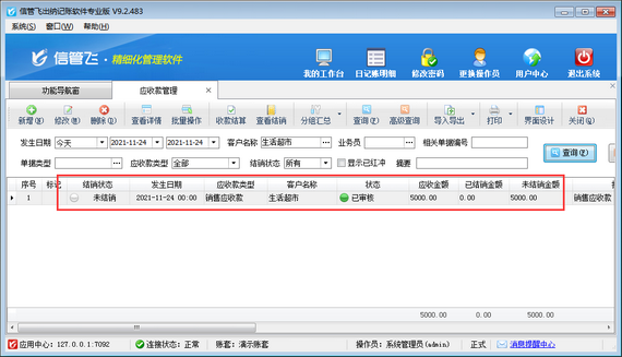 應(yīng)收、應(yīng)付賬款管理是現(xiàn)代企業(yè)資金管理的重要組成部分,其管理效果的好壞直接影響到企業(yè)經(jīng)營的成敗,出納記賬軟件中含有應(yīng)收應(yīng)付往來賬款管理功能,支持對應(yīng)收款、應(yīng)付款、預(yù)收款、預(yù)付款、退貨款等進(jìn)行管理。如果應(yīng)收款已結(jié)銷后發(fā)現(xiàn)收款結(jié)銷錯誤,需要刪除結(jié)銷記錄,如何刪除?本文演示一下詳細(xì)操作步驟。 如下圖所示,客戶“生活超市”應(yīng)收款500