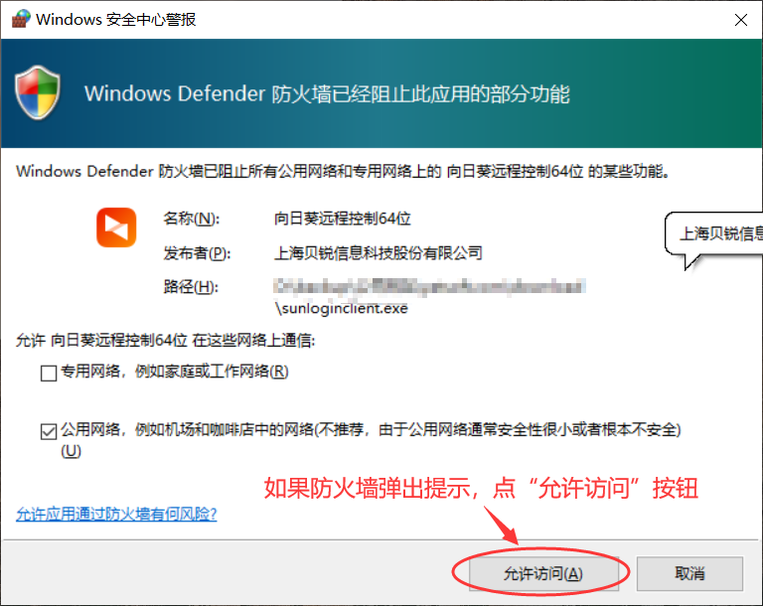 如果Windows防火墻彈出提示,點(diǎn)“允許訪問(wèn)”按鈕即可,如下圖所示: